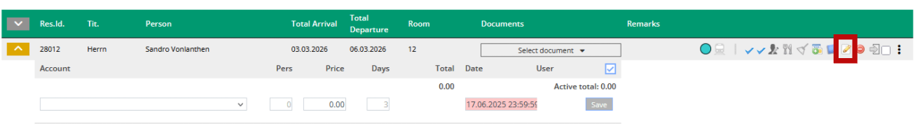 - In the reservations section, click on the icon “edit reservation”.