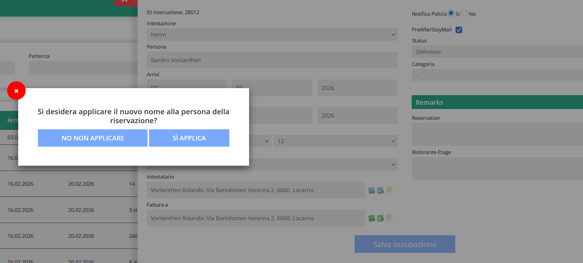 - Notify: here you can indicate whether the reservation should appear in the list of police notifications.