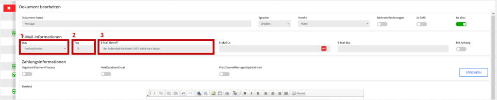 3.1 Impostazione documenti Pre/Post Stay Email