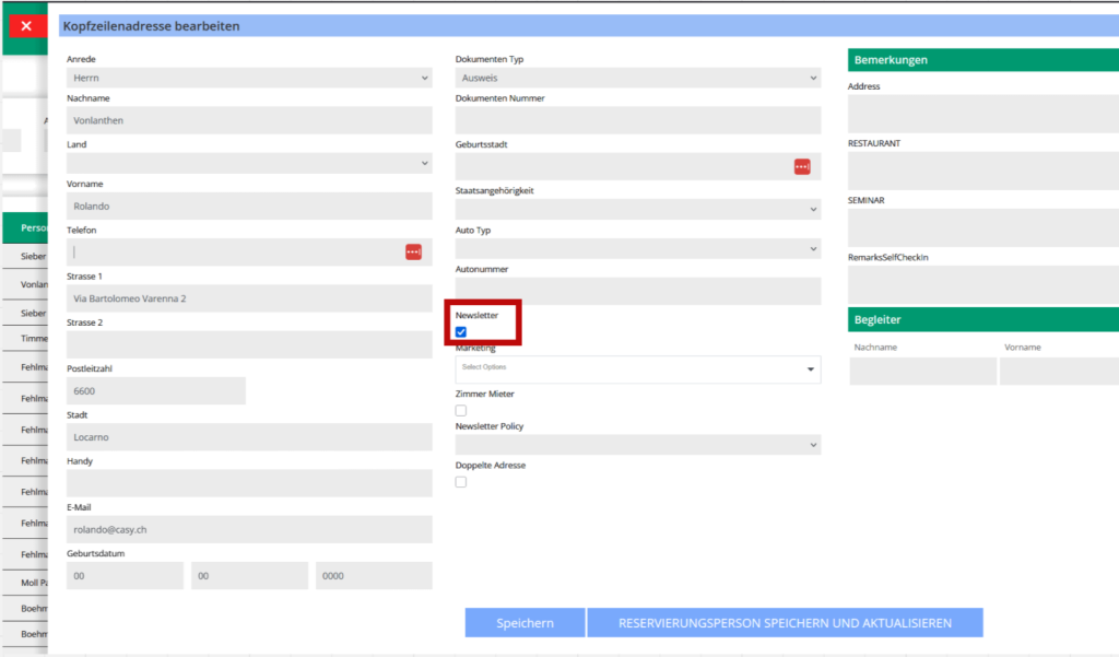 Se non si desidera inviare email a un determinato indirizzo, è possibile disattivare la checkbox “Newsletter” nelle informazioni dell’indirizzo.